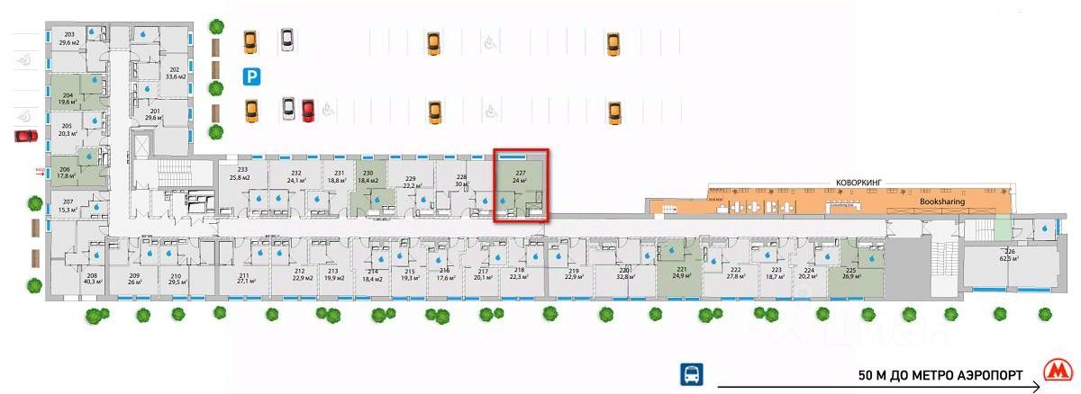 Лот: 416433, бизнес-центр Air-Space. БЕЗ КОМИССИИ! Продается офисное помещение (ГАБ) площадью 24 м2 на 2 этаже в офисном здании класса B Air-Space, расположенном в 2 минутах пешком от метро Аэропорт. Планировка: коридор, 1 кабинет с окнами во двор, полностью оборудованный санузел. Состояние помещения: с дизайнерским ремонтом. Высота потолков — 3,3 м. Установлено центральное кондиционирование и вентиляция. Все помещения имеют отдельный вход из коридора, двери и светильники в едином стиле и собственный оборудованный санузел. Сейчас офис сдан строительной компании в аренду с МАП = 110.000 руб в месяц (индексация со второго года — 10 %), отдельно оплачивает коммунальные ( по счетчикам) и эксплуатационные платежи (ЭР = 220 руб /м2/месяц).