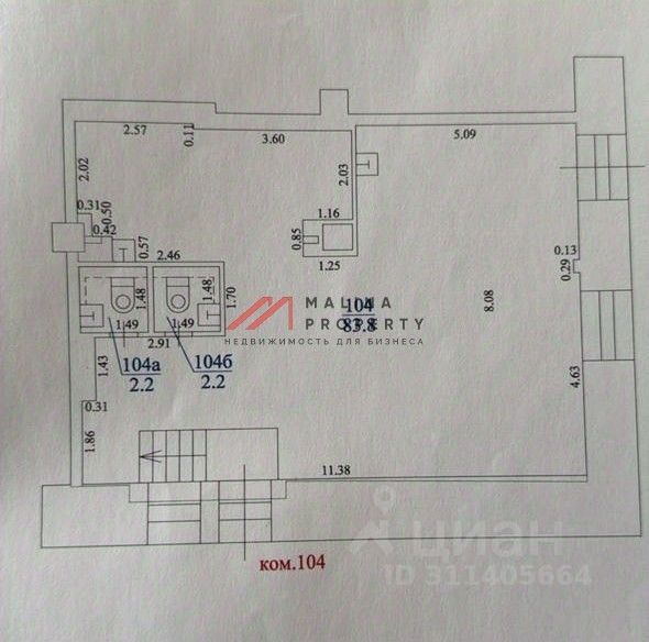 Помещение 96 м2, располагается на 1 этаже, открытая планировка, отдельный вход, высота потолка 3 м, витринные окна по фасаду. Электрическая мощность 30 кВт. Парковка перед фасадом. Место для размещения рекламы.