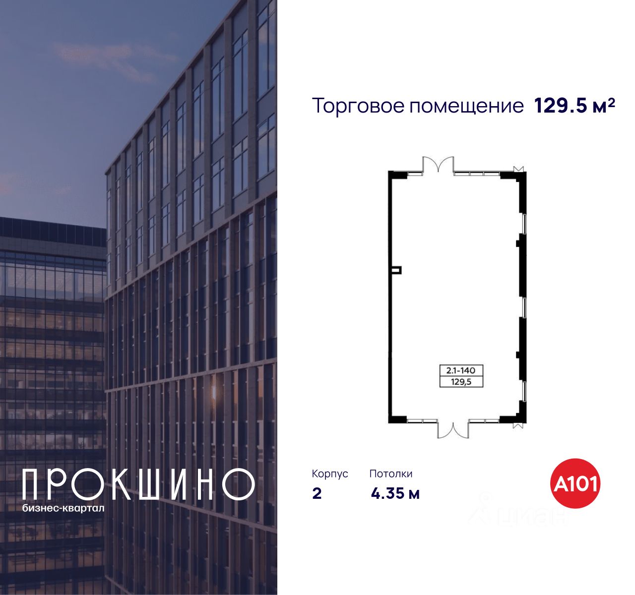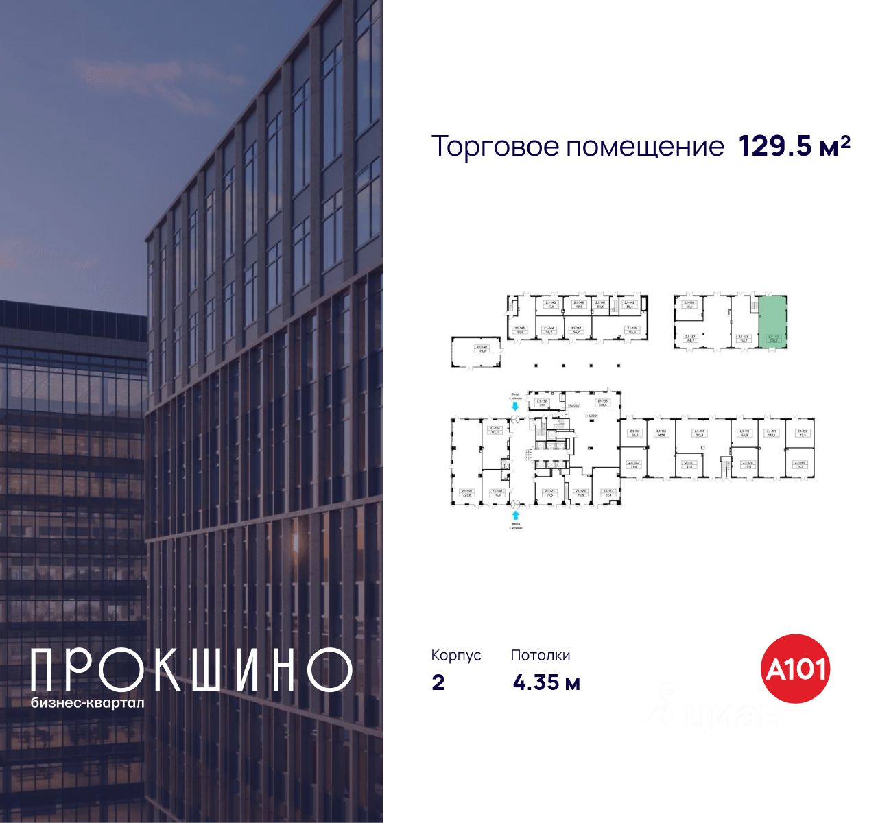 Продаётся торговое помещение площадью 129.5 кв. м. в Бизнес-квартал "Прокшино". Без отделки. Окна с видом во двор и на улицу. Высота потолков 4.35 м. Выделенная электрическая мощность — 100 кВт. Отдельный вход с улицы. Стоимость помещения — 80 128 125 руб. Способы оплаты и более подробная информация по телефону.