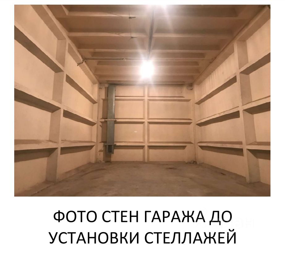 Железобетонный гараж на первом этаже 4х этажного гаражного комплекса по адресу ул. Наташи Ковшовой, д. 18 представляет собой изолированный бокс площадью 18.3 м². Состояние гаража хорошее, он оснащён вытяжкой, пожарной сигнализацией, автономной системой тушения пожара, электричеством и металлическими распашными воротами. Установлены 12 металлических стеллажей с грузоподъемностью 750 кг. Общая площадь для хранения (площадь по полу + площадь на полках стеллажей) = 47 м2.