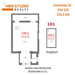 В площадь 125,1 кв.м. входит первый этаж (101,8кв.м) и подвальное помещение (23,3). Патио (примерно 60 кв.м) и разборная антресоль (примерно 40 кв.м) являются приятным бонусом к приобретаемому помещению.