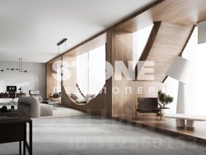 В реализации - офис, рассчитанный на команду от 5 до 40 человек, в составе премиального бизнес-центра STONE Мнёвники. Первый офисный проект в живописной Мнёвниковской пойме среди знаковых объектов спортивной инфраструктуры в окружении ЖК "Остров".