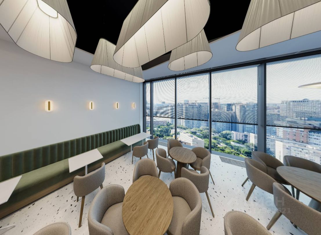 - Просторные помещения с панорамными окнами и потолком высотой 12 метров