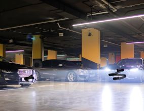 На въезде и выезде из паркинга круглосуточно дежурит охрана.