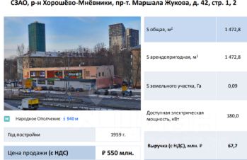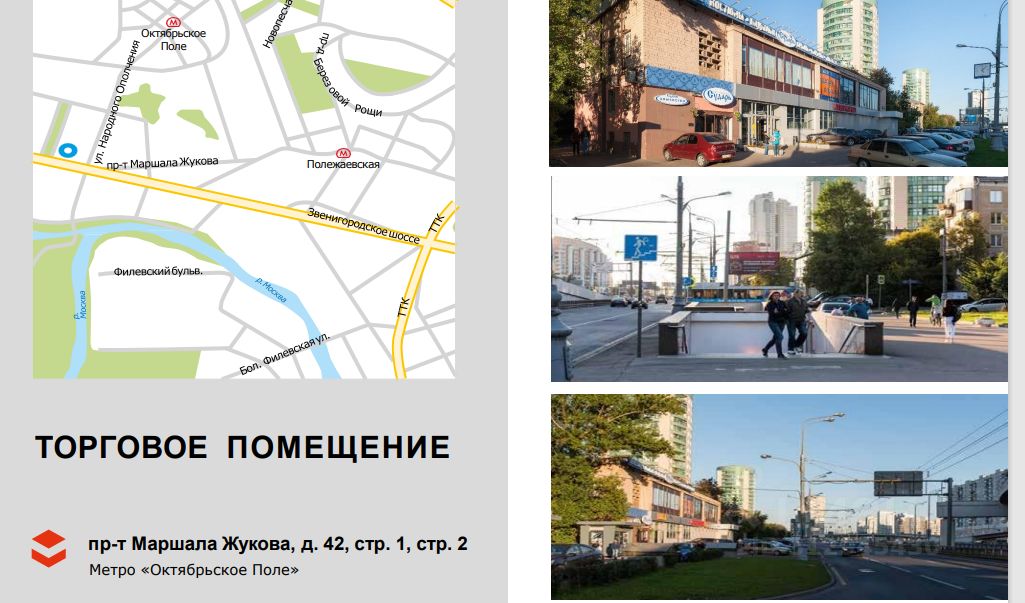 Продается коммерческое помещениe пo адрecу проcпeкт Маршaлa Жукова дом 42 c1. Ближайшая станция метро - Улица Народного ополчения или Октябрьское поле, расстояние до метро - 10 минут пешком.