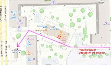 Высокий пешеходный трафик: помещение находится между главными входами в БЦ, а также на пешеходном маршруте к метро.