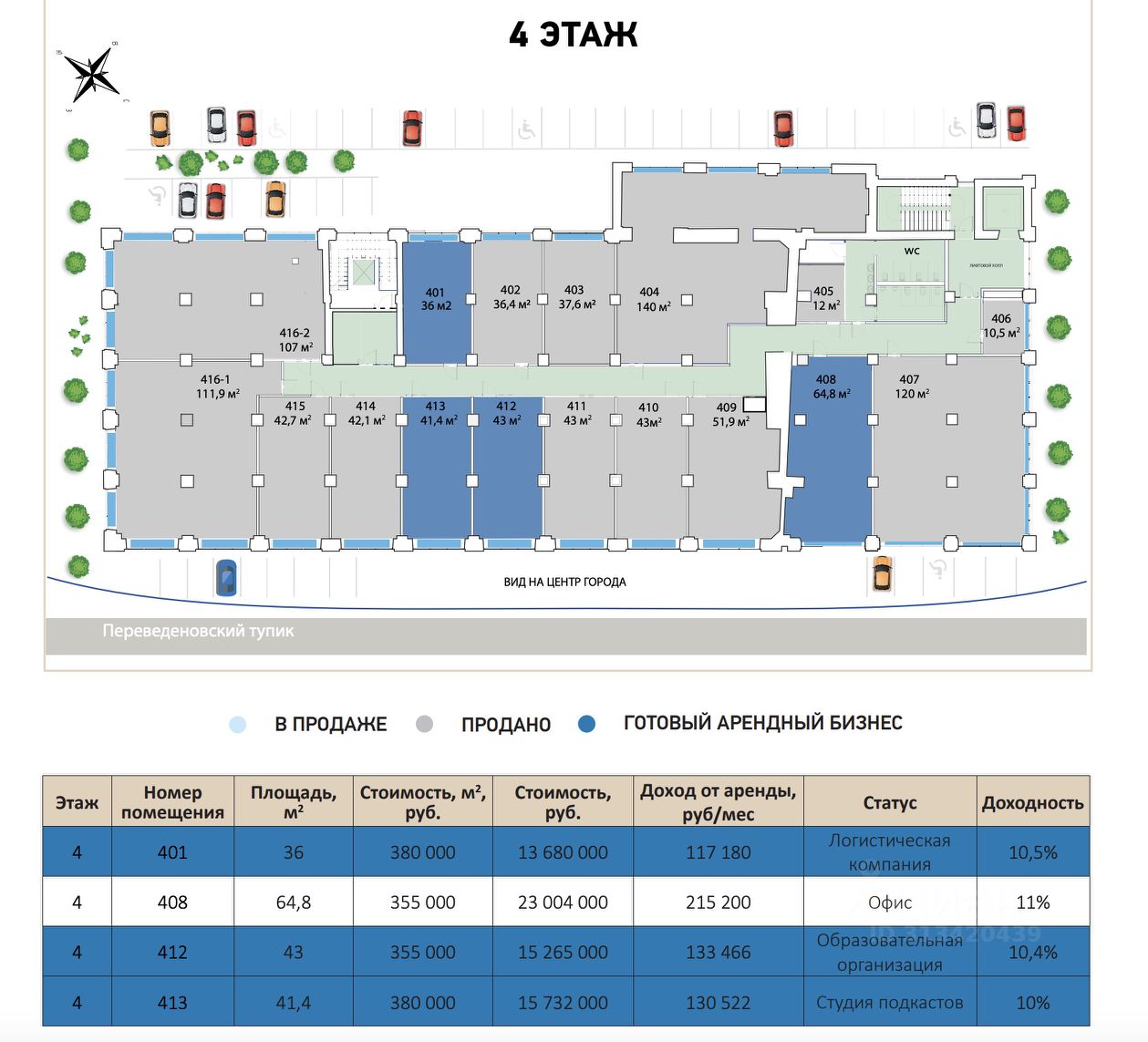 36м2 (4й этаж), большое окно - с Арендатором, МАП 117180р, (стоимость 13,680,000р)