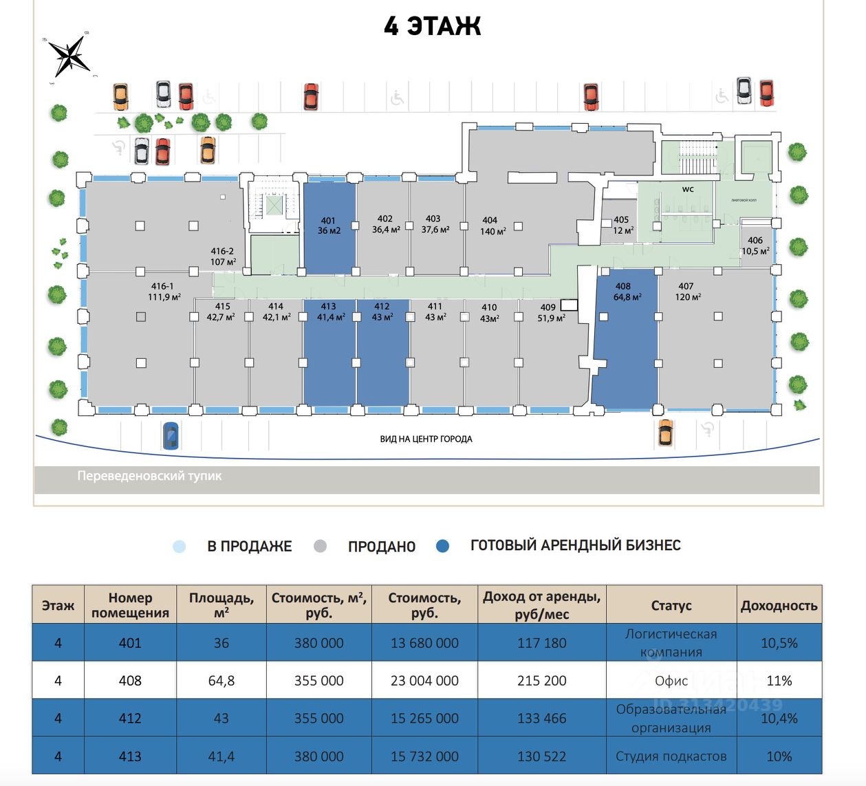 43м2 (4й этаж), большое окно - с Арендатором, МАП 133466р, (стоимость 15,265,000р)