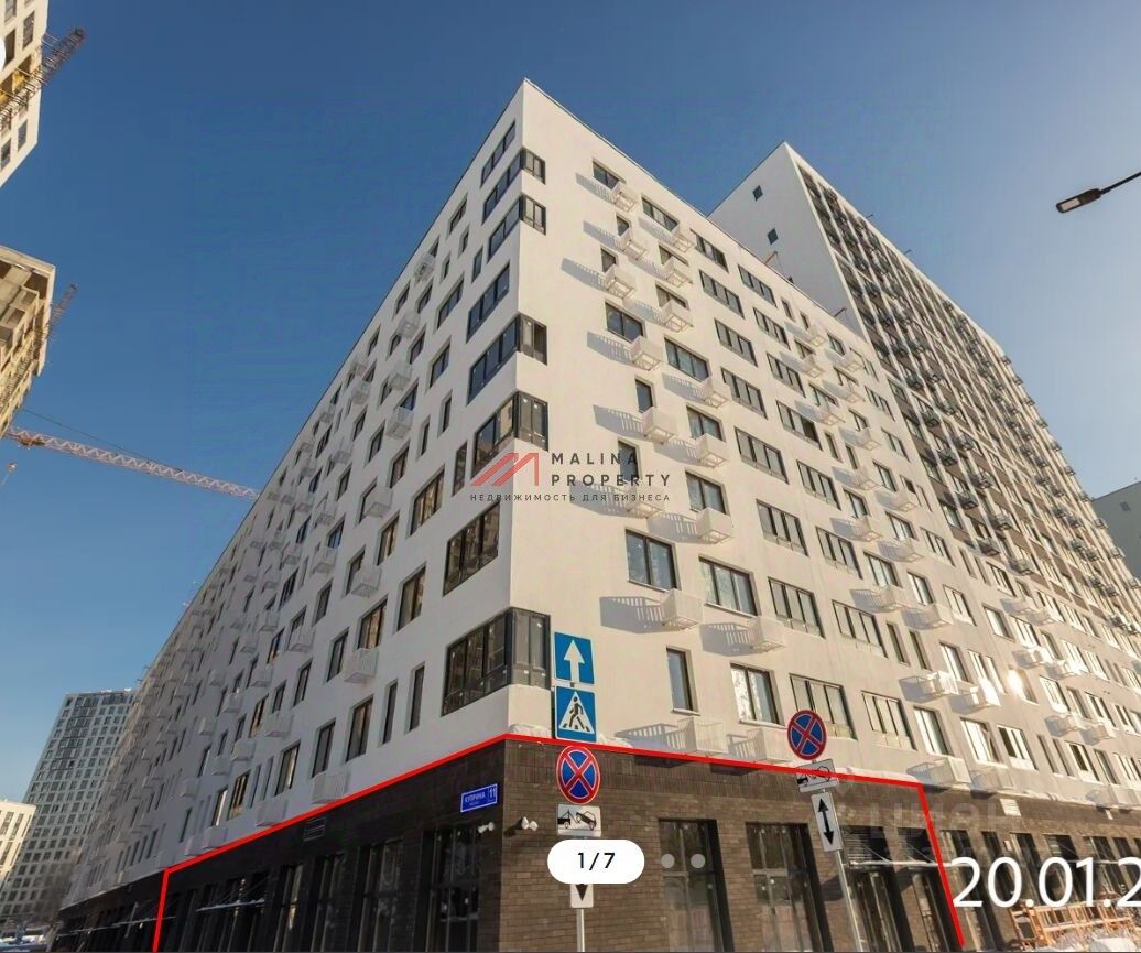 Помещение 444,7 м2, располагается на 1 этаже, открытая планировка, пять отдельных входов, высота потолка 4 м, витринные окна по фасаду. Парковка перед фасадом. Место для размещения рекламы.