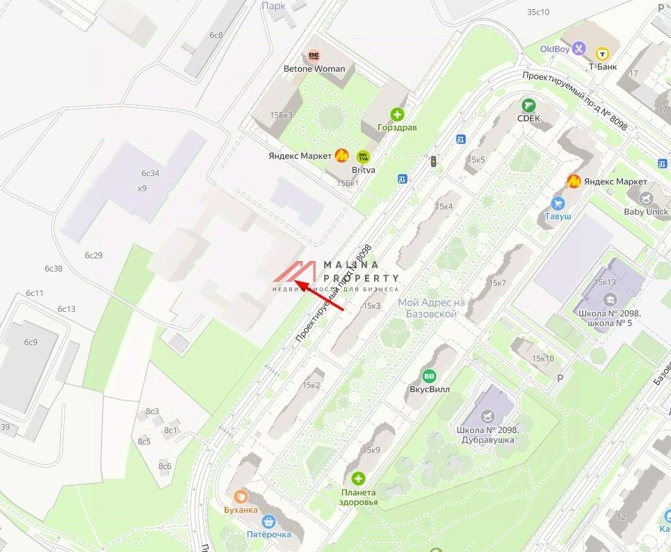 ЖК "Бусиновский Парк" состоит из 19 корпусов разной этажности (от 17 до 33 этажей). Через дорогу от новостройки возведён и заселён крупный жилой квартал "На Базовской" (12 корпусов по 17 этажей) с малым количеством коммерческих объектов. Сдача данного корпуса, согласно сайту застройщика-4 квартал 2026 года.