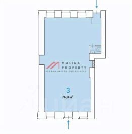 Помещение 76,3 м2 располагается на 1 этаже, открытая планировка, отдельный вход с фасада и со двора, высота потолка 3 м, витринные окна по фасаду. Место для размещения рекламы на фасаде.