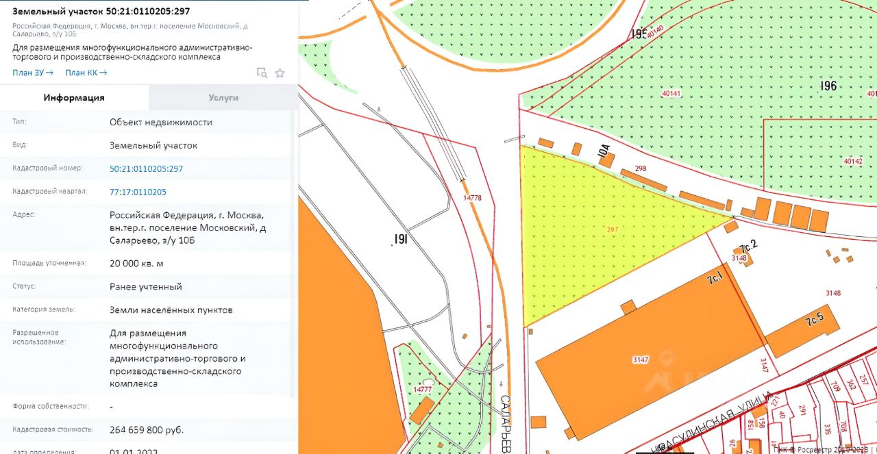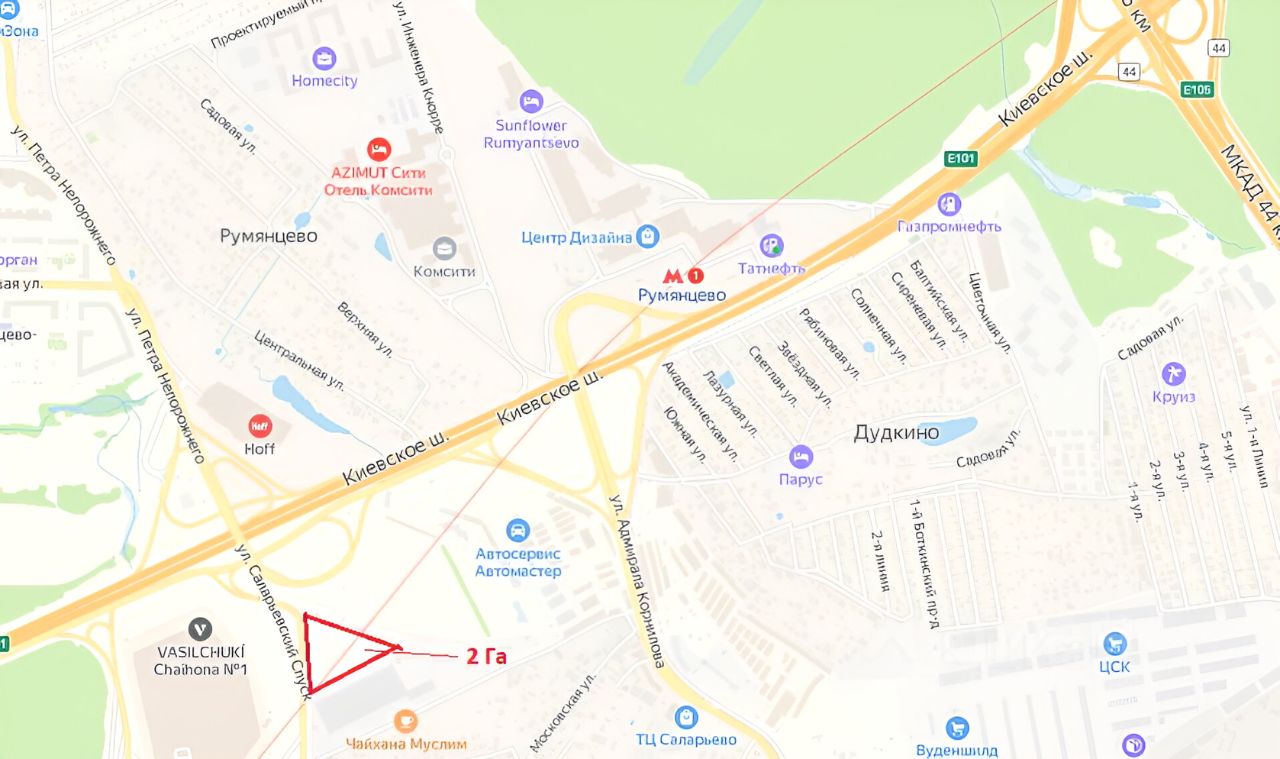 Продается участок 2 Га. 300 метров от Киевского шоссе, 250 метров от станции метро Саларьево.