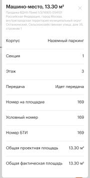 - Парковочное место находится в охраняемой наземной парковке.