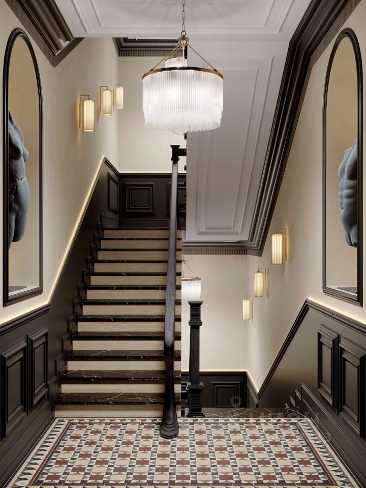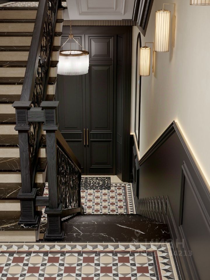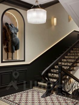 Две входных группы особняка отделаны натуральным камнем, деревом, метлахской плиткой, гипсовой лепниной.
