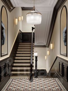 Пышный фасад здания выполнен в неоклассическом стиле с элементами модерна. Большие арочные окна открывают вид на историческую Москву. В особняке высокие потоки до 4,5 м. Современная инженерия.