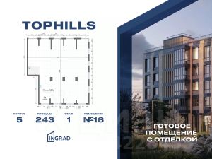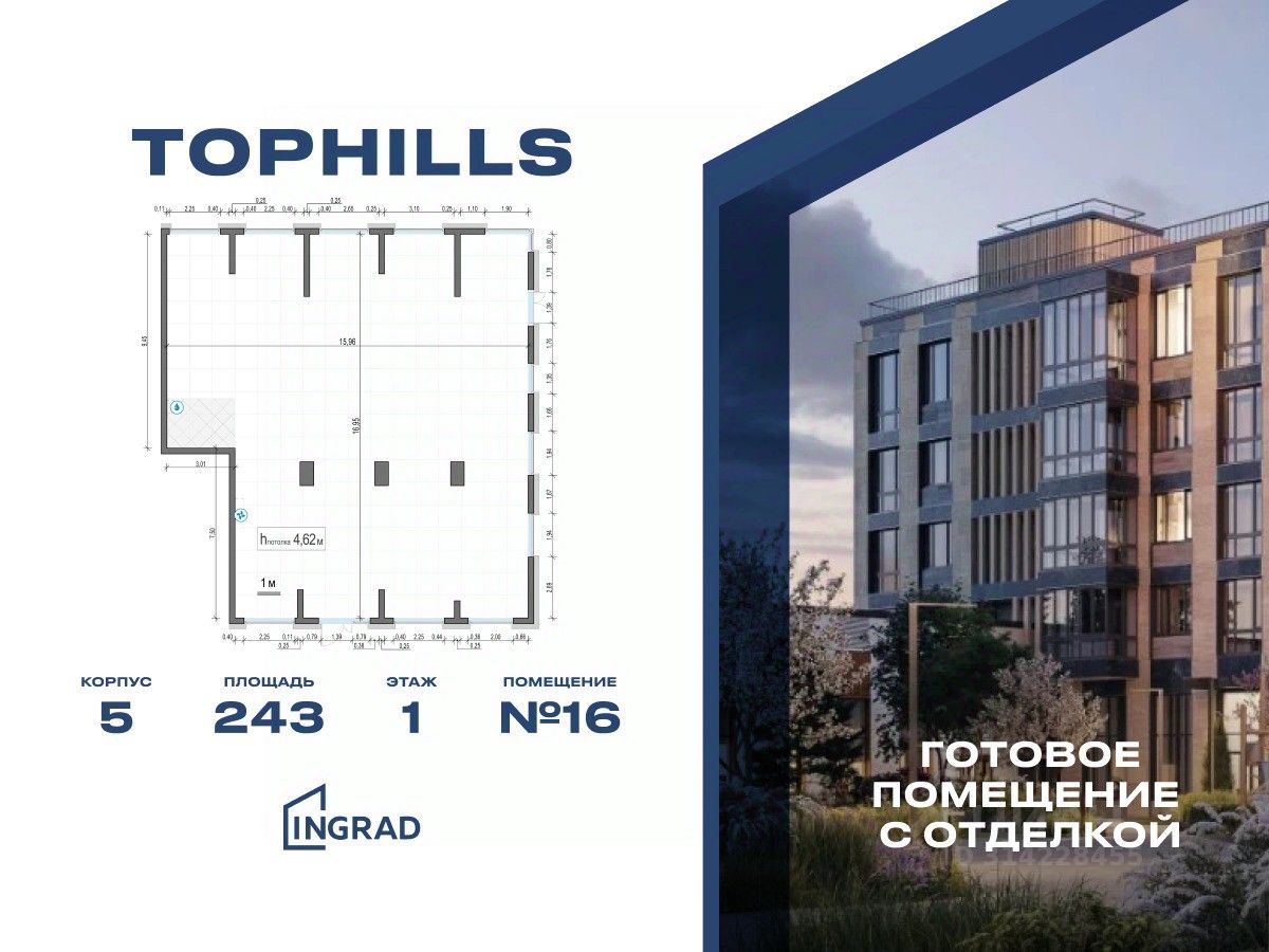 Готовое помещение с отделкой и арендатором площадью 242,3 кв.м. в квартале TopHills прямо у метро Нагорная. Расположено на 1 этаже жилого корпуса 5 на внутренней территории. 2 отдельных входа, возможность установить вызывную панель для доступа. В помещении 11 панорамных витрин, высота потолка 5,1 м, мокрые точки. Предусмотрена электрическая мощность 72,8 кВт.