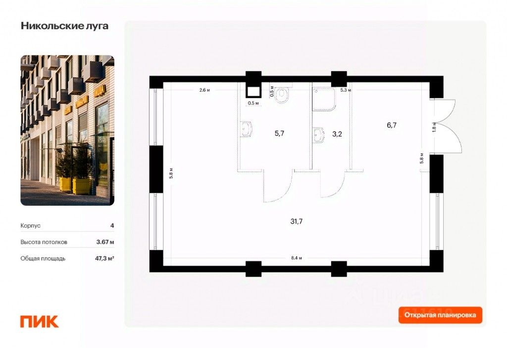 Продаётся нежилое помещение свободного назначения в новом жилом районе Никольские луга от ПИК. Открытая планировка, витринное остекление, удобный вход на уровне земли. Помещение номер 6. Продажа напрямую от застройщика.