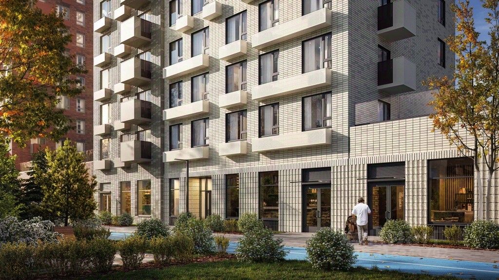 На первых этажах домов откроются магазины и необходимые сервисы, в каждом дворе разместятся детские и спортивные площадки, а через весь район протянется несколько пешеходных бульваров. Корпус 4. Ввод в эксплуатацию 2 квартал 2026.