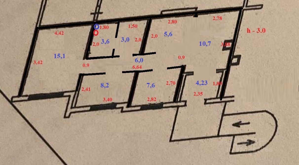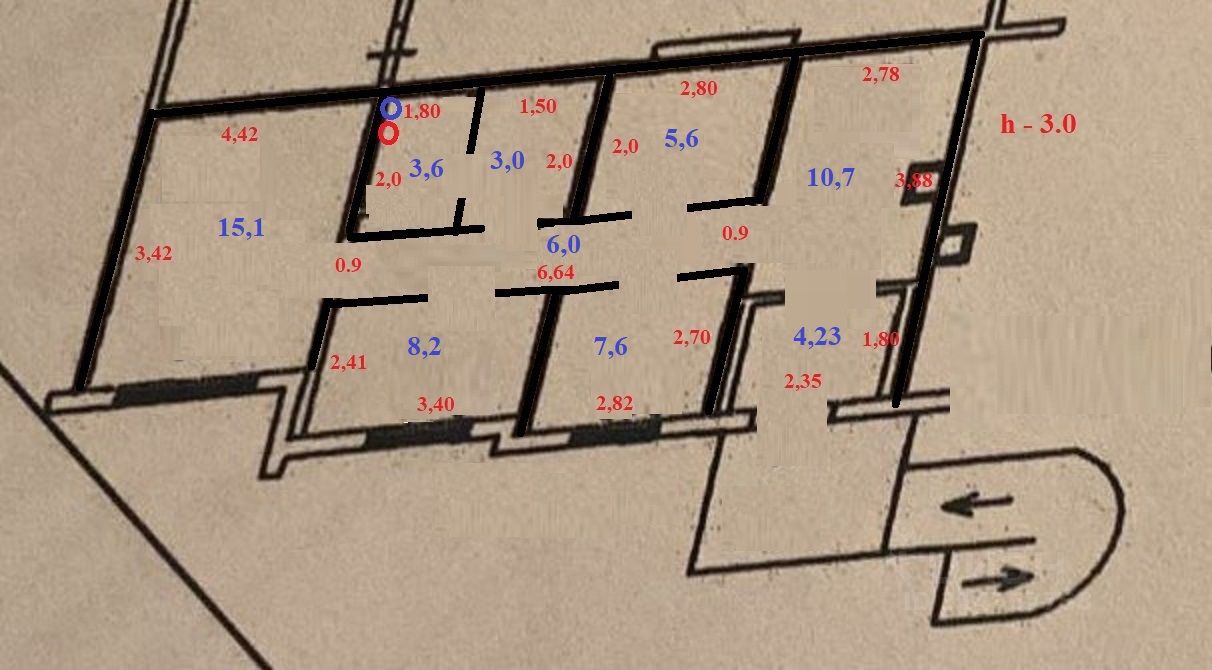 4 изолированных комнат (15,1 - 8,2 - 7,6 - 5,6 кв.м.)