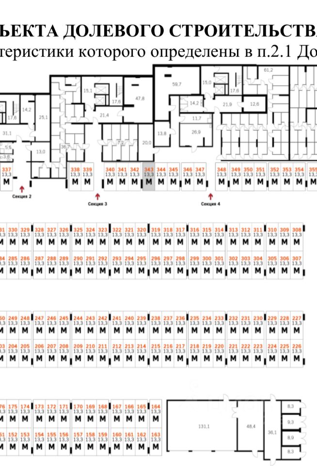 В ЖК СкайГарден в первом корпусе продается машино-место N 343 площадью 13,3 квадратных метров.