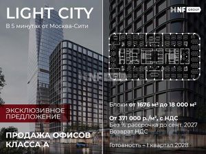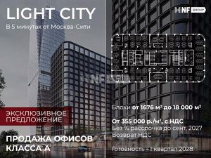LIGHT CITY — это бизнес-центр класса А, который сочетает в себе современную архитектуру и передовые инженерные системы. Проект предусматривает четыре офисных корпуса, что позволяет выбрать оптимальное пространство для вашего бизнеса. Типовой этаж площадью 1700 м² и возможность покупки блоков от 82 м² обеспечивают гибкость в планировании офисного пространства.