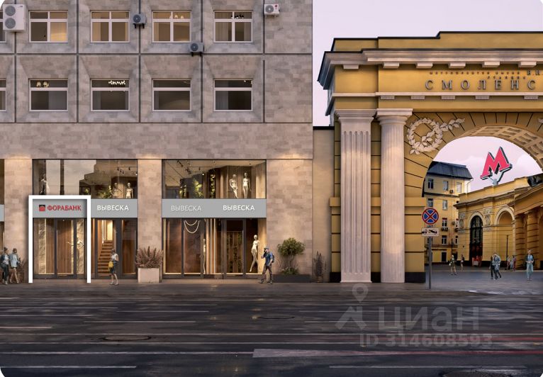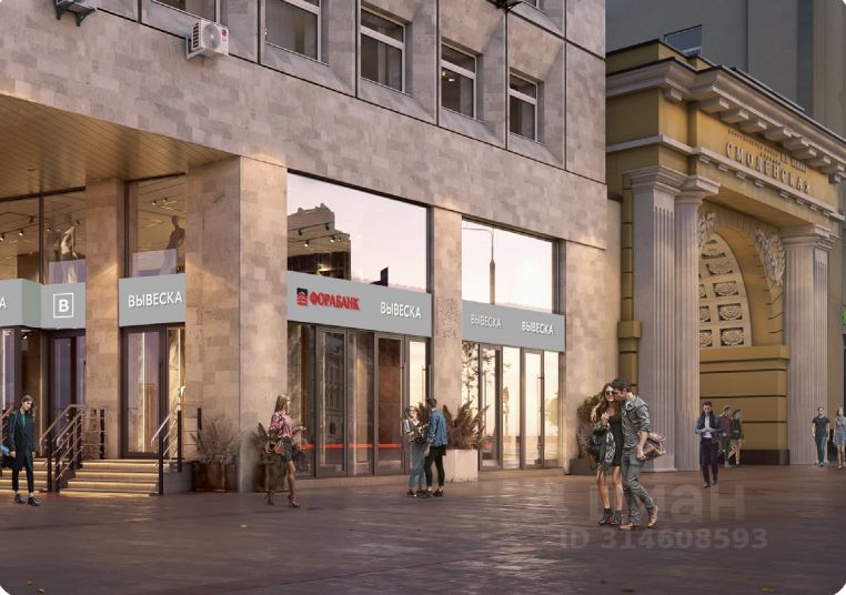 помещение на первой фасадной линии Садового кольца. В 20-30 метрах от выхода из станции метро Смоленская. Сверхинтенсивный пешеходный и автомобильный трафик. Развитая торговая, деловая и административная инфраструктура.