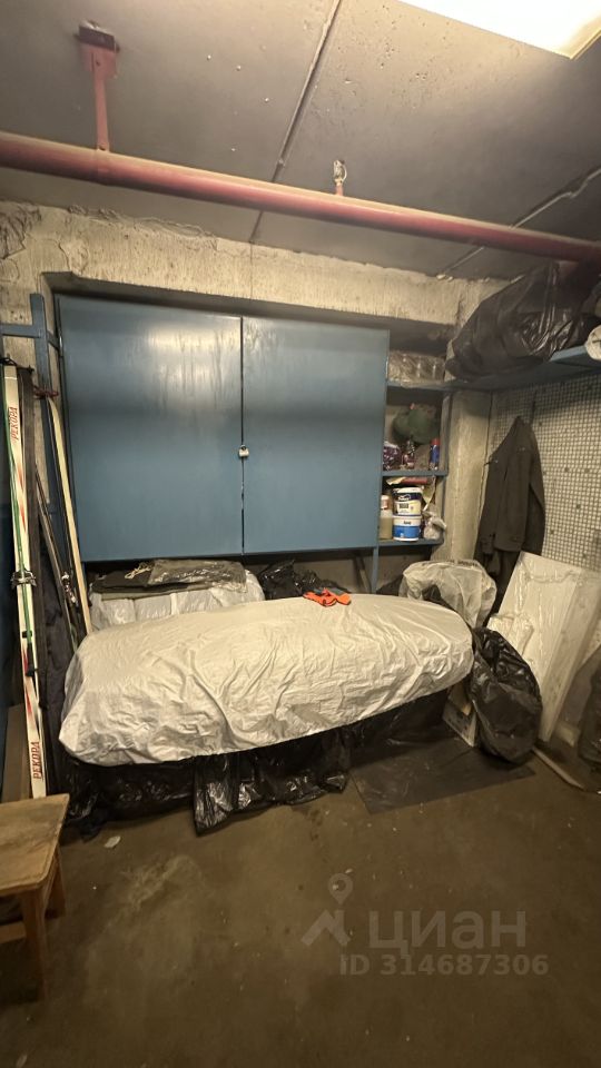 У дальней стены металлический шкаф глубокий шкаф (50см) с полками, удобно хранить инструменты, внизу под шкафом место для хранения колес или другого крупногабарита