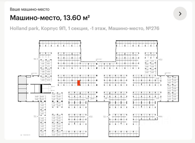 Продаю машиноместа в ЖК Холланд Парк к.9п., по ул. Н.Озерова, д.8, к.1., S= от 13,3 до 13,8 кв.м. Стоимость 3 350 000 руб.
