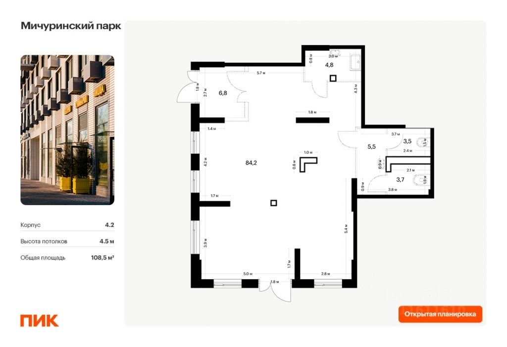 Продаётся нежилое помещение свободного назначения в новом жилом районе Мичуринский парк от ПИК. Открытая планировка, витринное остекление, удобный вход на уровне земли. Помещение номер 1. Продажа напрямую от застройщика.