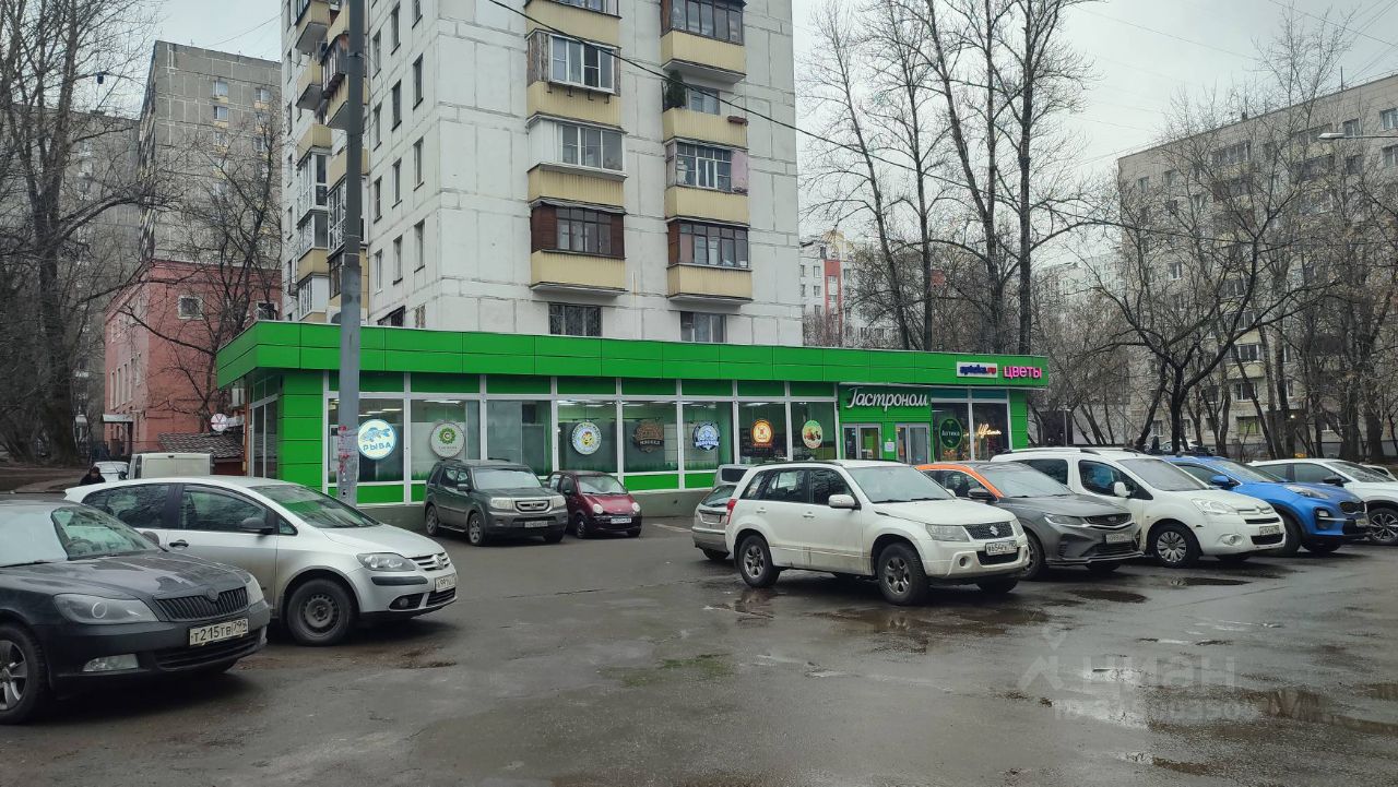 На первом этаже расположены помещения, арендованные под продуктовые магазины, цветочный магазин и аптеку.