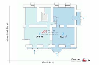 Продажа торгового помещения 76,5 м2 на ул. Брянская, д. 12 (8 минут пешком от метро Киевская). 1 линия домов.