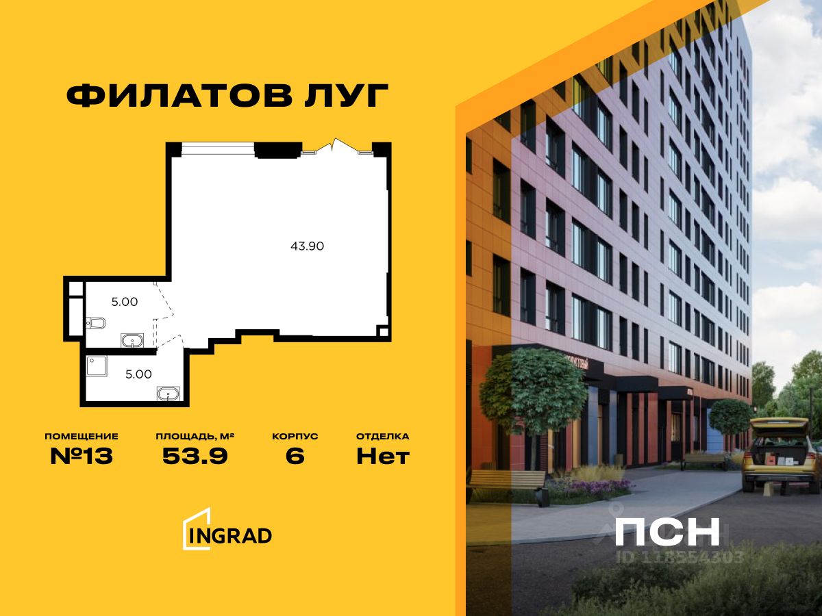 Продаётся коммерческое помещение свободного назначения в квартале "Филатов Луг". Помещение расположено в корпусе 6, высота потолка 4,7 м.