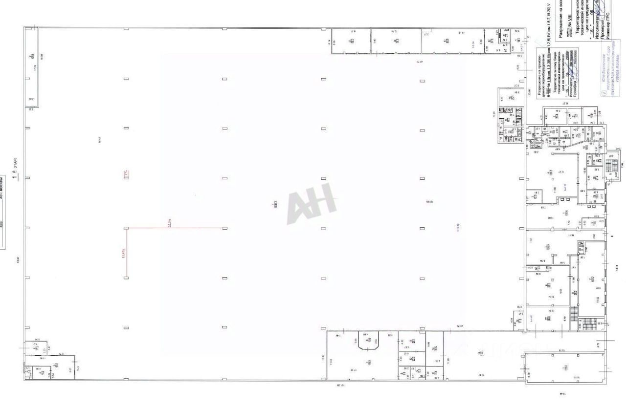 Сетка колонн - 12х24 м, высота потолка - 19 м, полы - бетон, ворота - на уровне "0", 11 отдельных входов и ворот.