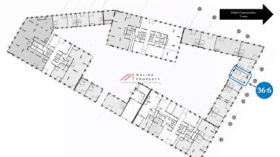 Помещение 41,2 м2, располагается на 1 этаже в стилобатной части дома, открытая планировка, отдельный вход с фасада, высота потолка 4 м, витринные окна по фасаду. Место для размещения рекламы.