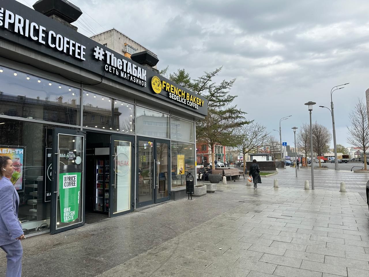 Помещение угловое с панорамным витринным остеклением, высота потолков 3,6 м.