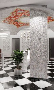 Дизайн-концепт предусматривает оформление в русском стиле в современном прочтении. Будут использоваться характерные для этого стиля яркие цвета, растительные орнаменты и аутентичные узоры.