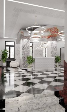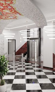 Дизайн-концепт предусматривает оформление в русском стиле в современном прочтении. Будут использоваться характерные для этого стиля яркие цвета, растительные орнаменты и аутентичные узоры. Есть помещения с балконами и террасой.