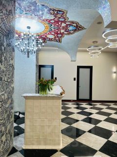 Сохраняя историю особняка, мы создали премиальный бизнес-центр "Нега" в нео русском стиле, но в современном прочтении. Используются характерные для этого стиля яркие цвета, растительные орнаменты и аутентичные узоры. Есть помещения с балконами и террасой.