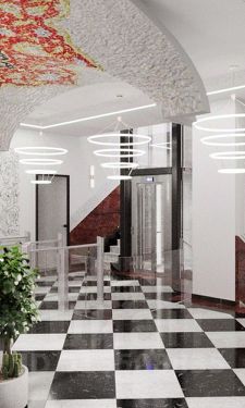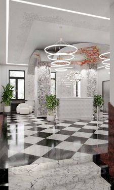 Дизайн-концепт предусматривает оформление в русском стиле в современном прочтении. Будут использоваться характерные для этого стиля яркие цвета, растительные орнаменты и аутентичные узоры. Есть помещения с балконами и террасой.