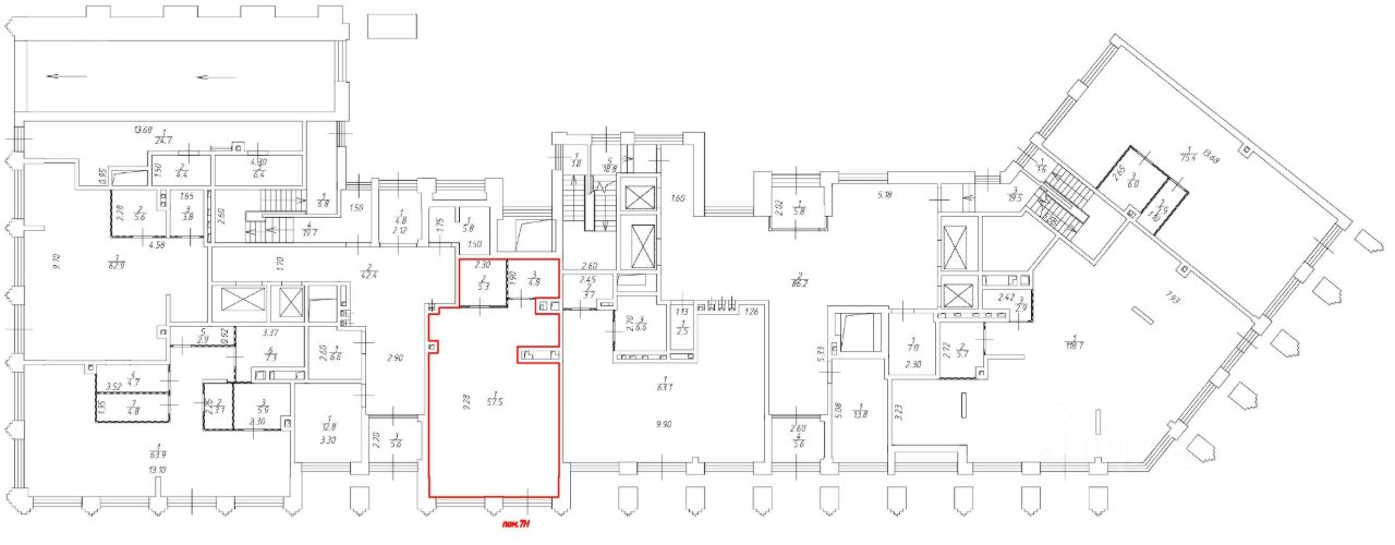 Конкретно над помещением находится 34 этажа бизнес-класса с соответствующей покупательной способностью жильцов. Вход в подъезд - соседняя дверь.