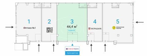 На данный момент помещение арендуется Совкомбанком, третьим по размеру активов частным банком России, который был основан в 1990 году. Банк насчитывает порядка 2700 отделений по всей России, обеспечивая стабильный поток клиентов и высокую ликвидность для арендованного помещения.