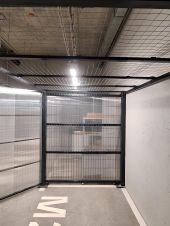 Стены — из прочной решетки, зашиты панелями. Двери закрываются на замок. Удобное расположение — отдельная секция у выхода.