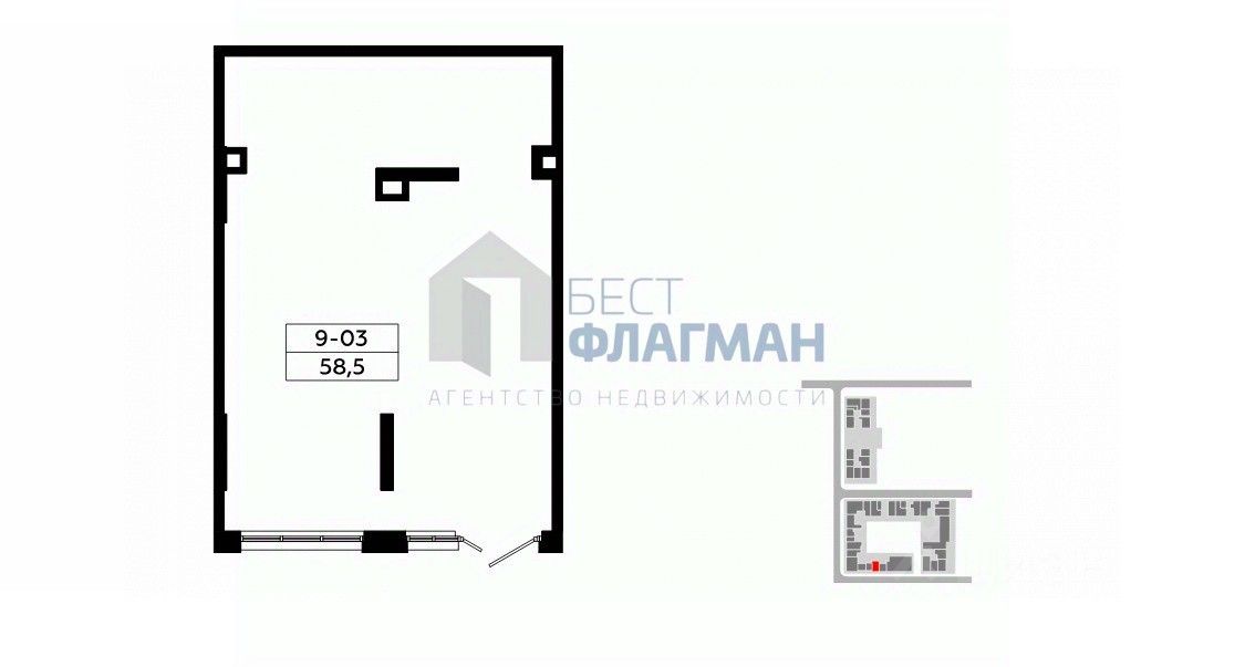 Арт. 100761509 Продается помещение свободного назначения 58,5 кв. м., на 1-м этаже 19-ти этажного жилого дома в ЖК "Бунинские кварталы", 1-я линия домов.