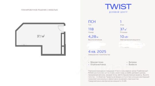 Продается ПСН 37 кв.м. в современном БЦ около метро!