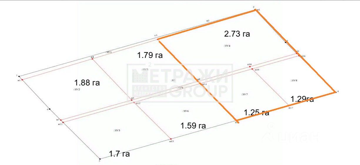Возможность объединения с соседними участками (1,88га, 1,7га, 1,79га 1,59га) в любой конфигурации, до 13га.