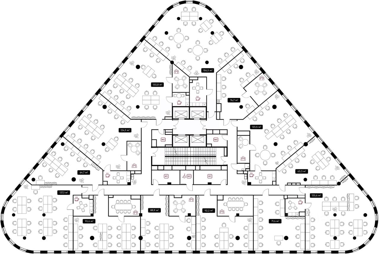 Продается офисное помещение площадью 121.8 м2 на 2 этаже в бизнес-центре NOON от