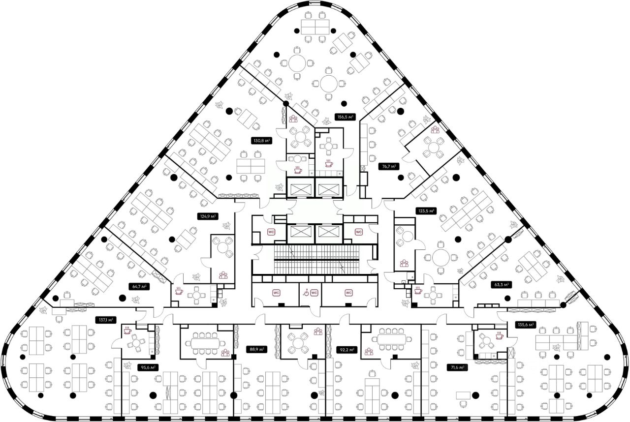 Продается офисное помещение площадью 63.5 м2 на 2 этаже в бизнес-центре NOON от