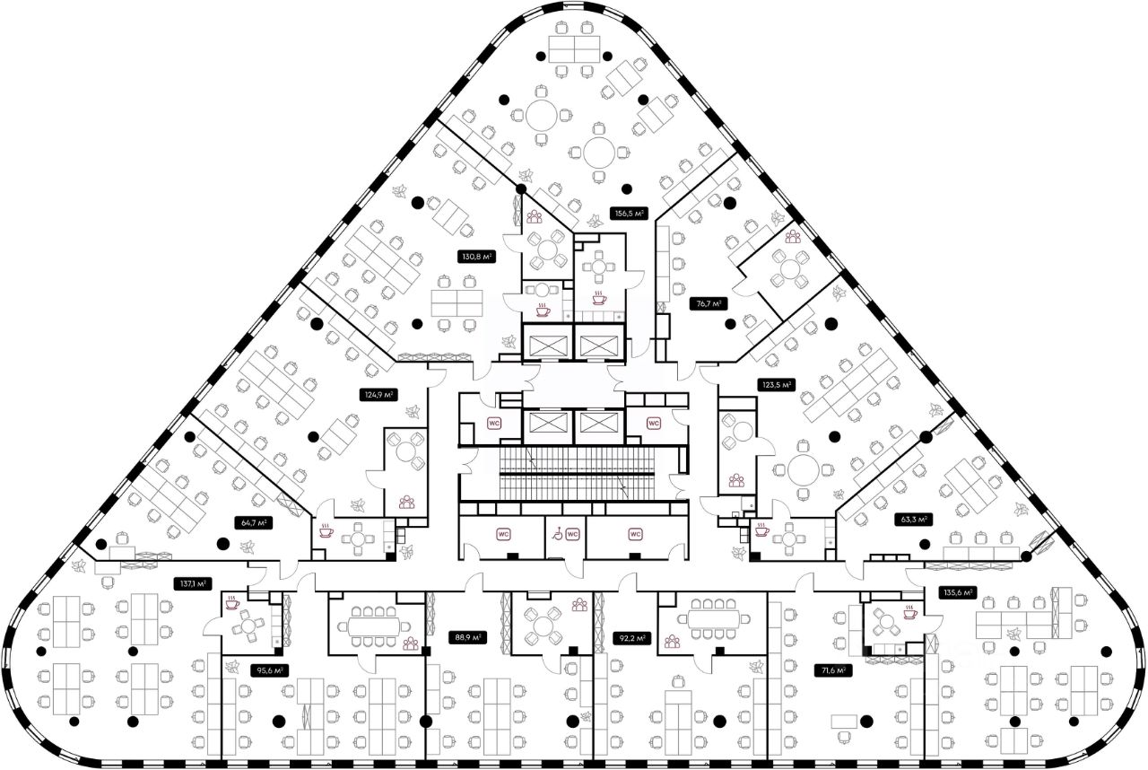 Продается офисное помещение площадью 88.9 м2 на 2 этаже в бизнес-центре NOON от