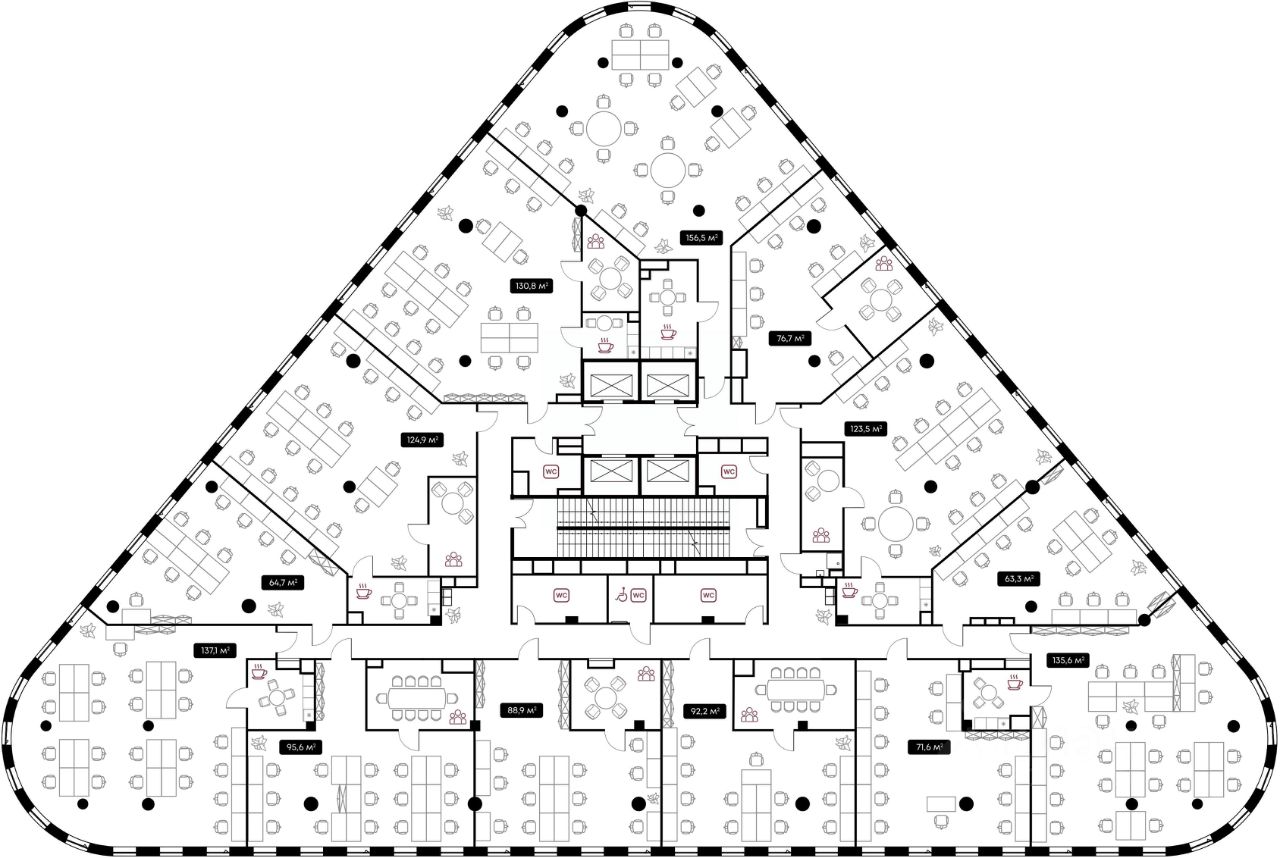 Продается офисное помещение площадью 124.9 м2 на 2 этаже в бизнес-центре NOON от