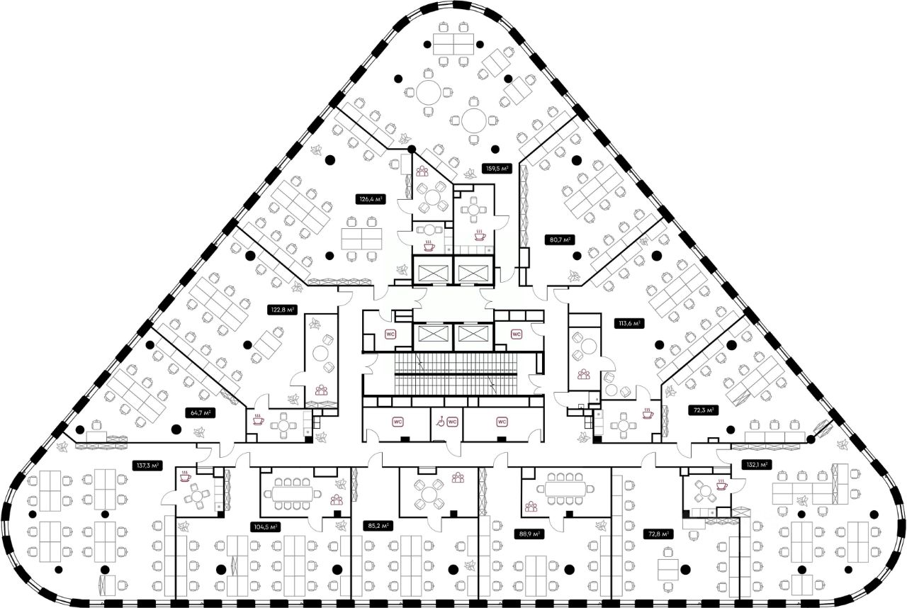 Продается офисное помещение площадью 113.6 м2 на 3 этаже в бизнес-центре NOON от